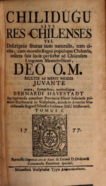Debido a su experiencia y contacto con los indígenas del sur, Havestadt elaboró una obra que contiene los antecedentes recabados acerca de la lengua y de la cultura mapuche. Este texto, titulado Chilidugu o “cosas chilenas”, fue publicado en latín en 1777, en la ciudad de Munich, diez años después de la expulsión de los jesuitas. La obra que, de acuerdo con Hanisch (1974: 97) es “una mezcla de elementos”, está constituida por siete partes: la primera es una gramática; la segunda, la traducción del Indiculus universalis (del Padre Pomey), en donde se hace una descripción de las cosas del mundo (los animales, las plantas, los hombres, las ciudades y la ciencia); la tercera, comprende catecismo, oraciones, sermones y cantos; la cuarta es un diccionario mapudungun-latín; la quinta parte corresponde a voces latinas; en la sexta parte se incluyen canciones; en la séptima, el autor relata su viaje (1751-1752).